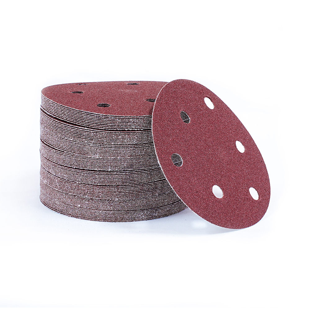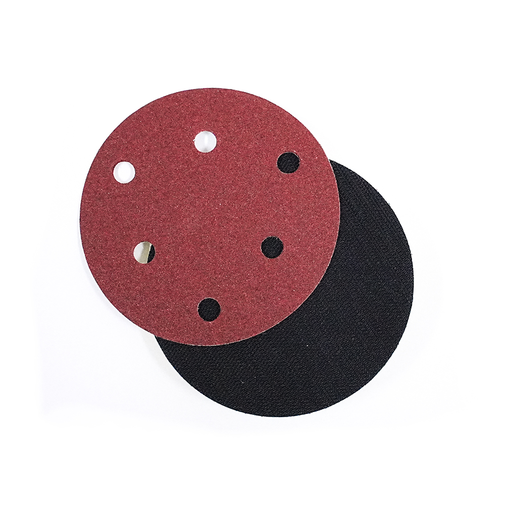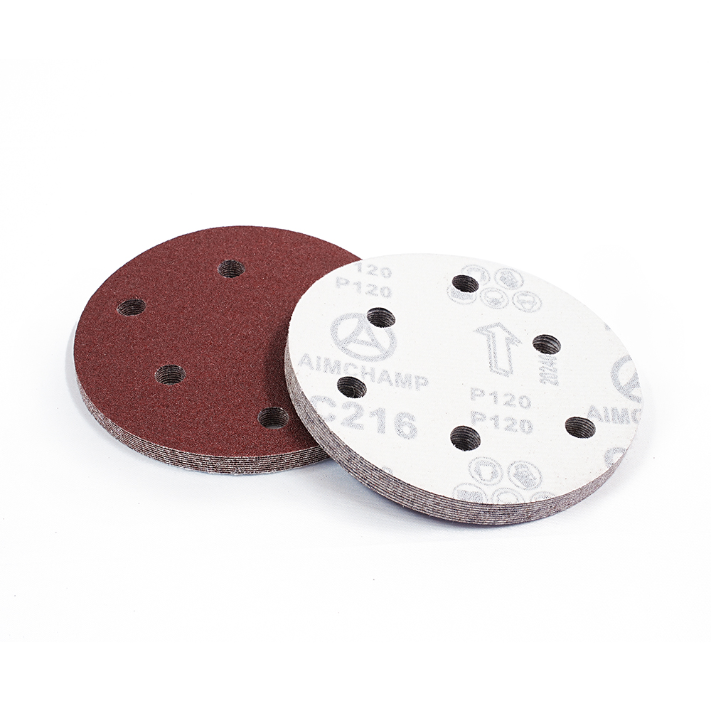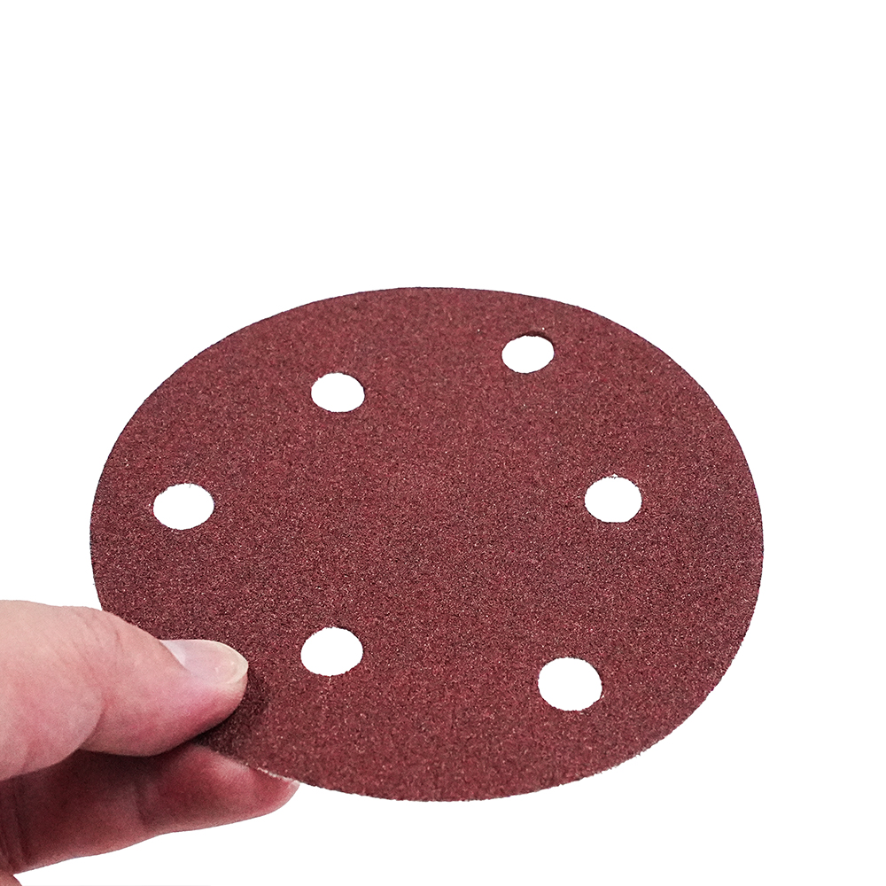 外贸专供砂碟5寸6孔植绒砂纸批发颗粒均匀磨削力强C216植绒红砂